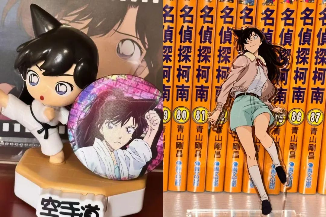 她给时代财经一连发来了好几张照片,一张照片里是亚克力的毛利兰立牌,定格在褐色的长发和蓝色短裙随风而动的场景;另一张照片里,则是一个Q版毛利兰的格斗场景手办,旁边还放着一个印有毛利兰穿空手道服形象的徽章。